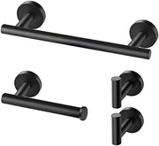UUHOME Bathroom Hardware Set, Matte Black Bathroom Accessories Set, 304 Stainless Steel Towel Bar Set Wall Mounted Include 16" Bathroom Towel Rack, Toilet Paper Holder and 2 Robe Hooks(4pcs) (Black)