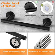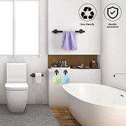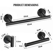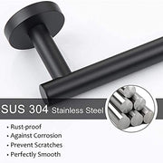 Why Choose Bathroom Hardware Set ! One set meet all your needs: Our bathroom hardware set includes 16'' hand towel bar, 6.5'' toilet paper holder and 3pcs robe hooks, so they can meet all your needs in daily life. Modern Design: The towel bars are designed with sleek simple lines and concealed screw installation, which add more modern elements to your bathroom and home. Intimate Package: Each product has an exclusive position in the packaged sponge, which can well protect them from scratches during transportation. Great Material: This bathroom towel racks are made of high quality SUS 304 stainless steel material, which make the bathroom towel bars strong rust-resistance in the damp environment. Never Paint Off: 4 protection layers are added on SUS 304 stainless steel to make it more durable and more Anti-Rust, you do not need to worry about paint off or rusting. Matte Black Surface: The tower bars for bathroom are designed with delicate matte black surface, so they won't display any spots and resist daily scratches. Easy Installation: Our towel bar hardware set is very easy to be installed, you can easily finish the installation with some certain tools in only 6 steps. Strict Quality Inspection: Every piece is passed 10-20 times of quality inspection before package, to make sure they are all in perfect condition. PACKAGE INCLUDED: 1 x 16-Inch Towel Bar 1 x Toilet Paper Holder 2 x Towel Hook 10 x Screw 10 x Anchor for Concrete 4 x Hexagon Screw 2 x Hexagon Wrench 1 x Installation Instructions This Bathroom Towel Bar Set is very easy to be installed by following 6 steps: Step 1. Decompose the products with the ''L'' tool which is in the package; Step 2. Mark the location of the installation holes with a pencil; Step 3. Drill holes on the wall with a drill 1/4 bit; Step 4. Using a hammer to hit the anchor(included) into the hole.