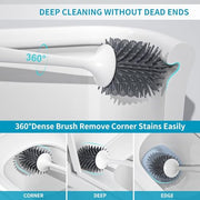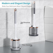 WEKOTEE Toilet Bowl Brush and Holder Set,Silicone Toilet Bowl Brush,Toilet Cleaner Brush for Bathroom,Floor Standing & Wall Mounted Toilet Scrubber Without Drilling, Light Gray (185-01)