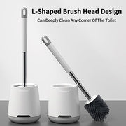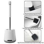 Wesoke Toilet Brush and Holder Set, Silicone Toilet Cleaner Brush Deep Cleaning Toilet Bowl Brush with Ventilated Holder & Long Handle for Bathroom Restroom, Floor Standing Toilet Scrubber Accessories