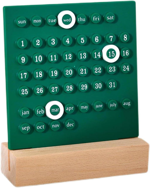 MEMORY FISH Wooden Desk Calendar Perpetual Calendar Retro Home Unique Gifts,Month Date Display, Desk Decorations for Office, Desk Accessories Aesthetic, Cute Desk Decor(Green) (MY2023061201)