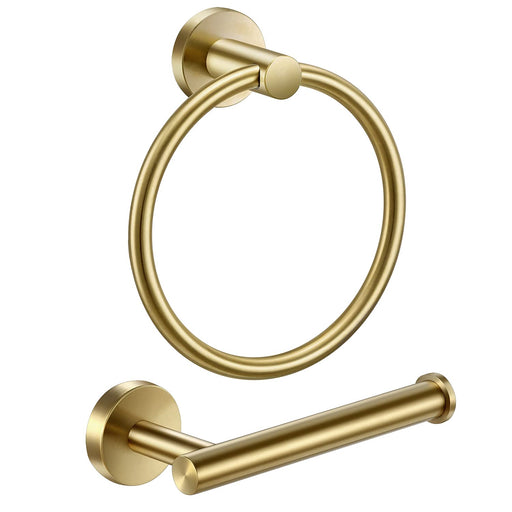 Pynsseu 304 Stainless Steel Bathroom Hardware Accessories Set Brushed Gold 2-Piece Set Includes Toilet Paper Holder, Hand Towel Ring,