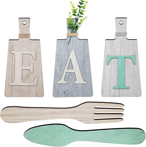 View full detailsJetec Cutting Board Eat Sign Set Hanging Art Kitchen Fork and Spoon Wall Decor Rustic Primitive Country Farmhouse for Home Decoration ()