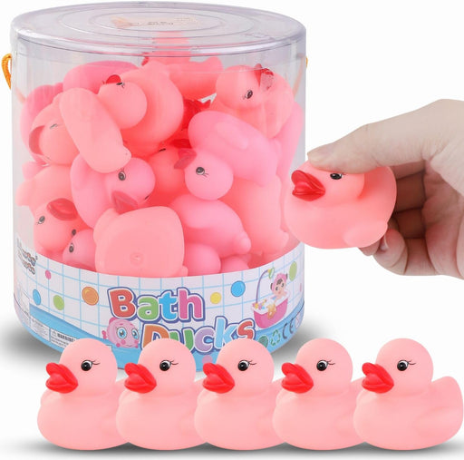 Liberty Imports Bucket of 36 Pcs Classic Rubber Duck Bath Toys | Float and Squirt Duckies for Baby Shower, Birthday Party Favors, Kids Gifts (Pink)