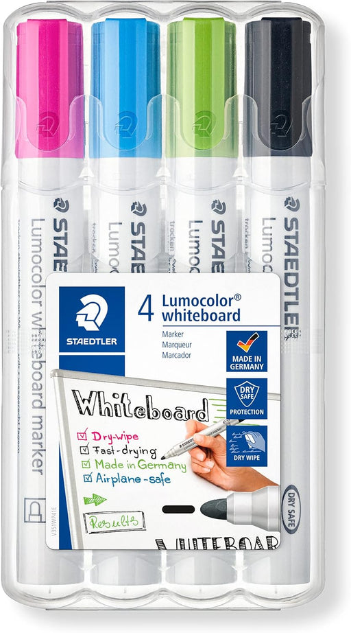 Lumocolor whiteboard markersCan be dry-wiped from whiteboards and surfaces such as glass and porcelain without leaving a traceDRY SAFE ink means pe...
