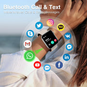【24/7 health tracking】High-performance optical sensors, the smart watch for Android and iPhone will timely and precisely work as a fitness tracker to record your daily walking steps, distances, calories, REAL-TIME MONITOR your HEART RATE and show it in the watch face and stored in the App, and monitor blood oxygen and sleep quality (Deep Sleep, Light Sleep, REM and Awake). With a detailed data-based presentation to analyze and remind your body status and trend and care about your health from your wrist, give you the advice to help you adjust the lifestyle
