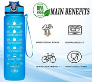 • PREMIUM QUALTY & HEALTH-FRIENDLY: Crafted with top-grade tritan co-polyester plastic, our motivational water bottle is 100% BPA-free, toxin-free, odor-free, and reusable. It guarantees your daily hydration without compromising your health. With a generous 1L capacity, it's suitable for both hot and cold beverages. Ideal for various activities like hiking, cycling, yoga, and more. Perfect for a healthy lifestyle on-the-go.