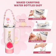 • ??nique & Practical Design??ur water bottle handle come with a advanced silicone safety ring and bohemian woven handle strap, unparalleled safety. Our bottle carrier boasts attractive floral patterns.It is not only practical but also enhances your cup's aesthetic appeal with additional stanley charms.