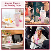 Hahamiya Stanley Cup Accessories Set of 7 - Silicone Boot, Water Bottle Handle Strap, Straw Cover, Charms for 40/30 oz Tumbler - Pink