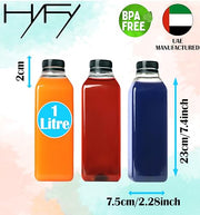 - SET INCLUDES: 10 Pieces of 1 litre/33.8oz clear disposable plastic bottles. Transparent bottles with black caps.