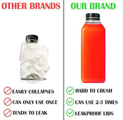 - SAFETY: The water bottles are made of BPA free, non-toxic plastic. So it is completely safe to drink from. These juice bottles are disposable but they can be used two to three times.