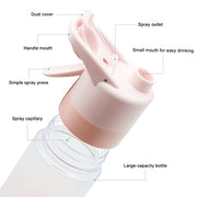 KASTWAVE Mist Spray Water Bottle, 650ml Sports Water Bottle Reusable Fitness Water Jug Multifunctional Spray Water Cup with Mist Hydration (Pink)