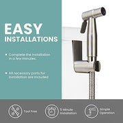 [Humanized Design] The premium stainless steel sprayer is hand-held, lightweight, easy to hold, you only need to press the switch to produce water, easy to use, suitable for people with constipation. The set includes a 1.5m stainless steel hose and a bidet toilet sprayer wall bracket to store the hand shower when not in use.