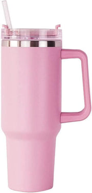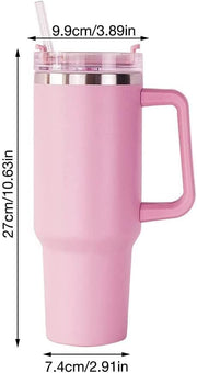 Bestlsy 40oz/1200ml Insulated Travel Mug Tumbler with Handle Double Wall Vacuum Sealed Stainless Steel Cup with Straw and Lid Coffee Beer Mug for Hot Iced Drink (Pink)