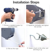 HASTHIP® Retractable Clothesline - 30lbs Portable Heavy Duty Indoor and Outdoor Washing Line, 39 Feet PVC Retracting Clothes Line with Wooden Clamp, Wire Clothesline Outdoor Clothesline (Grey)
