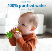 ERGONOMIC DESIGN. The multi-textured teether eases pain and discomfort for baby, and reaches safely into baby’s mouth for complete oral soothing.