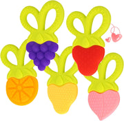 SHARE&CARE BPA Free Silicone Fruit Baby Teether Toy with Storage Case, for 3 Months Above Infant Sore Gums Pain Relief (5 Fruits)