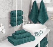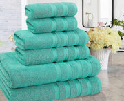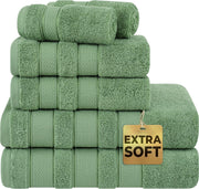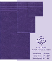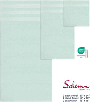 Towel Set Includes 2 Bath Towels of 27 x 54 inches, 2 Hand Towels of 16 x 28 inches and 2 Washcloths of 13 x 13 inches.