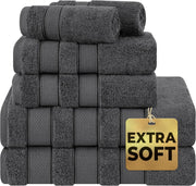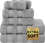 American Soft Linen GMSD 6-Piece 100% Turkish Genuine Cotton Premium & Luxury Towel Set for Bathroom & Kitchen, 2 Bath Towels, 2 Hand Towels & 2 Washcloths [Worth $72.95] - Rockridge Grey