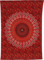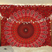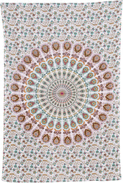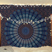 Bless International, Indian Wall Hanging Psychedelic Hippie Bohemian Peacock Mandala Tapestry Bed Sheet Gold Pink Blue King 225x265cm