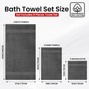 Infinitee Xclusives Premium Bath Towels Set - [Pack of 8] 100% Cotton Highly Absorbent 2 Bath Towels, 2 Hand Towels and 4 Washcloths - Hotel & Spa Quality Bath Towels for Bathroom (Shadow Grey)