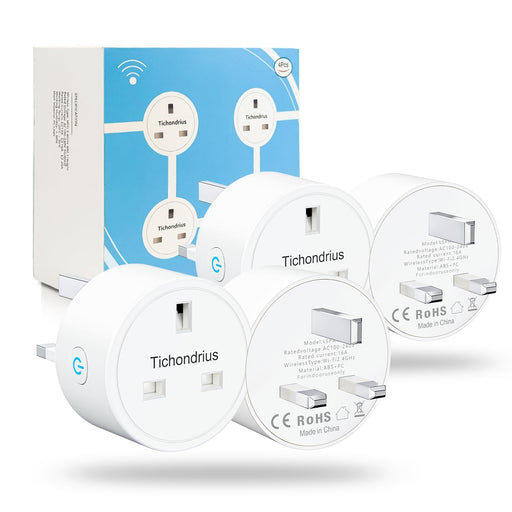 View full detailsTichondrius WiFi Smart Plug, 4 Pack 16A Smart Outlet Plug Socket Compatible with Alexa, Mini Socket with Remote Control & Voice Control with Electricity Statistics Timer Function, No Hub Required