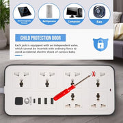 Circuit Green UK Electrical Extension Lead – 6 Sockets, USB & Type C (2 Meters) The Circuit Green extension lead is the ultimate power extension solution for modern homes and offices. With a 2-meter extension cable, 6 sockets, 3 USB ports, and 1 USB-C port, it functions as a reliable and high-performance extension cord with USB-C—perfect for charging all your smart devices. Whether you call it a power strip, extension lead, or extension cable, it delivers the versatility and reach your setup needs. Made with 100% pure copper wiring, this electrical extension ensures stable and efficient power distribution. The thick, durable cord offers excellent heat dissipation, and its sleek black retro design fits seamlessly into any environment. Smart and Efficient Design This 10-in-1 power extension hub includes multiple sockets for convenience, along with built-in safety shutters to help protect children. It also serves as a plug adapter and multi-device charging station, ideal for homes, offices, and entertainment setups. Portable, Practical, and Stylish Whether you need a 2-meter extension cord to reach behind furniture or a compact unit for on-the-go use, this extension cable is designed for flexibility and performance. Lightweight and easy to carry, it’s perfect for daily use or travel. Specifications Product Name: Multi-Function Extension Lead Voltage: 10A Current: 220/240V Rated Power: ~2000W Socket Ports: 10 (6 Three-Pin, 3 USB, 1 USB-C) Color: White Cord Length: 2 Meters Stay powered and connected with the Circuit Green extension cord with USB-C—your dependable power extension for any space.