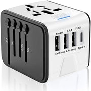 Disgian Travel Adapter, Universal International Power Adapter with 3USB Port And Type-C International Wall Charger Worldwide AC Power Plug for Multi-nation Travel UK, EU, AU Over 200 Countries (White)