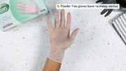 - ??Perfect For Light-duty Tasks Ideal For Tasks That Require Constant Glove Changing Within Your Food Service Operation, These Gloves Are Perfect For Tossing Salads And Making Ready-to-order Sandwiches. The Powder-free Poly Material Is Easy To Slip On And Off And The Comfortable Fit Doesn't Get In The Way Of Your Tasks. They're Also 100% Latex-free. 100 Pieces of gloves per box, Best for cleaning, cooking, Dish-washing etc..