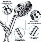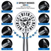 Gcirik High Pressure Shower Head with Handheld, 8 Spray Settings + 2 Power Jet Modes Shower Heads, 5.04" Detachable Showerhead Set with Stainless Steel Hose and Adjustable Bracket