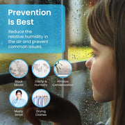 - 20 litres per day: Removes up to 20 Litres of water per day with low energy consumption. Ideal for damp, mould and moisture in homes, basements and bathrooms suffering from damp and humid conditions