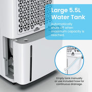 - Large water tank: 5.5L water tank automatically shuts off when full, with a continuous drainage hose included for long-term use and 4 wheels for easy portability between rooms