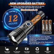 Shadowhawk Flashlight Rechargeable Torch Light, 20000 Lumens Flash Light Led flashlights Tactical, XHM77.2 Led Torch Light High Power, USB Handheld Powerful Torches for Camping Hiking Emergency