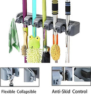 - Broom Mop Holder Tidy Organizer: 5 Slots - Strong and Sturdy broom mop storage rack with 5 rubber-gripped balls, adjust to each handle's thickness; 6 Hooks - Retractable when not in use. Can be pulled down to hang some smaller tools, buckets, rags, brushes, umbrellas.