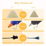 - ?50 THIN GLUE STICKS?- The pack comes with 50 thin glue sticks (Diameter: 7mm; Length: 20cm). This not only allows you to start working as soon as you have it in your hands, but also allows you to use it for a long period of time.