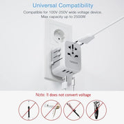 - 5 in 1 International Power Adapter: The european adapter provides a universal AC outlet and 4 USB charging ports, max capacity up to 2500 watt (max 250 Volt, 10 A), can charger up to 5 devices Simultaneously; This adapters for europe is suitable for hotel, bedroom, and college dorm room