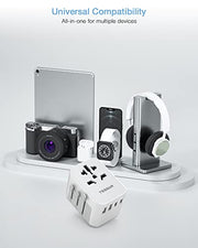• 5 in 1 Worldwide Travel Adapter with USB: This universal travel adaptor provides a worldwide AC outlet and 4 USB charging ports. 2 USB A and 2 USB C in total 21W can meet your need to charge multi devices. Ideal for charging your phones, laptops, tablets, cameras and more