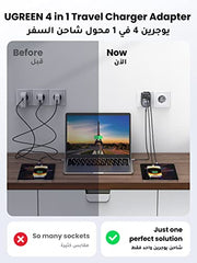 UGREEN 4-in-1 Travel Charger Adapter 30W Accepts Devices with UAE/KSA/UK Plugs for Use in Type C Sockets in European Plug Travel Converter Charger with 3 USB Ports, Type G 3 Pin to Euro C Plug