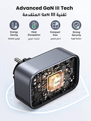 - ?Energy Saving, Environmental Friendly?: Adopted with GaN tech, UGREEN fast charger plug enjoys the innovative Hybrid power solution, which increases the power conversion rate to 95%, greatly saving energy and reducing heat.