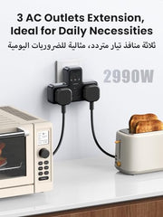 - ?3 AC Outlets Extension, Ideal for Daily Necessities?Plug into a power outlet socket and you will get 3 AC outlets with 2990W, this outlet extender supports 3 electrical devices charging simultaneously, which can meet your most needs of home entertainment, working center, and kitchen appliances, etc.