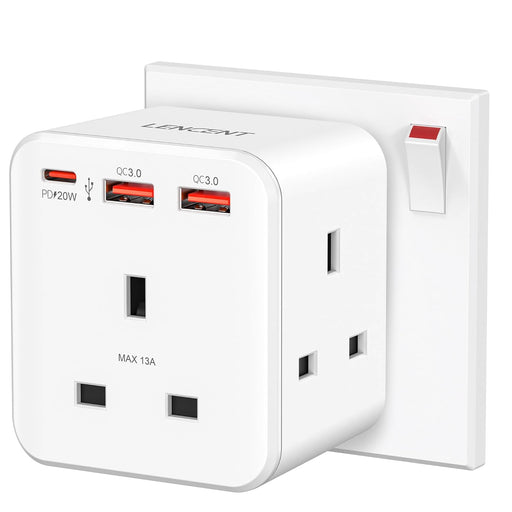 View full detailsLENCENT Multi Plug Extension, 3 Way 3 Plugs Socket adapter, 6-in-1 Cube Electrical Extender Outlet Adaptor, PD&QC 3.0 20W USB Wall Charger, Plug Expander for Home, Office, Kitchen, 13A 3250W