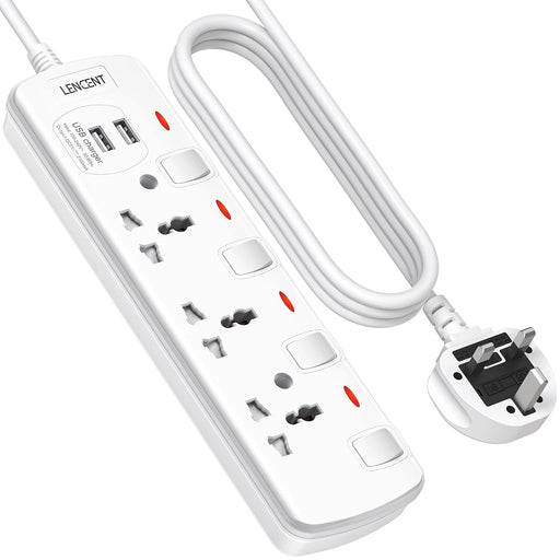 View full detailsLENCENT Extension Lead with USB Slots, 3 Way Sockets Outlet Power Strips with 2 USB Ports, Universal Plug Adapter with 2M Extension Cord, Charging Station for Home, Office, Individually Switched