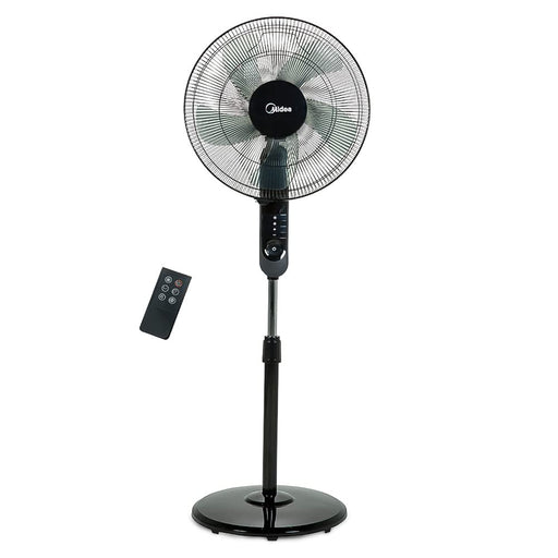 Midea Pedestal Stand Fan with Remote Control, 16 inch, 3D Oscillation Directions, 3 Speed Levels & Adjustable Height, 5 Leaf Blade with 7.5 Hours Timer, Best for Home & Office, Black, FS4015FR