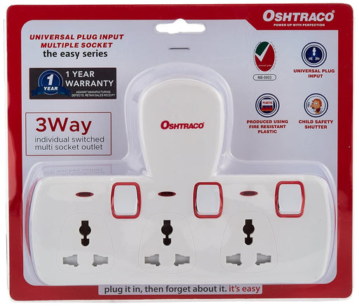 OSHTRACO Multi Plug Extension Socket, 3 Way Electrical Outlet Extender, Wall Charger, Universal Plug Adapter, Charging Station for Home, Office, Kitchen, Individually Switched- ESMA Certified