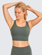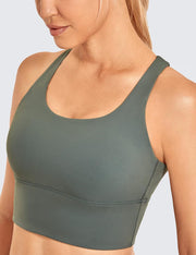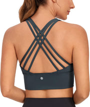 CRZ YOGA Women's Longline Strappy Sports Bras for Women Wirefree Padded Yoga Bras Tops