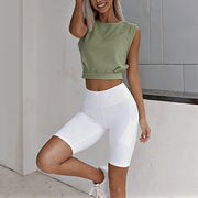 The sleeveless sweatshirt is a cropped vest with a loose fit that can be easily layered over any bra for maximum comfort.