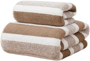 Versatile Set: Includes one bath towel (70 x 140 cm) and one hand towel (40 x 60 cm) in a stylish striped design.