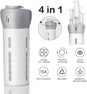 reusable travel shampoo bottle in one convenient case.and has unique 4-In-1 design. With 4 refillable travel bottles in one case that is easy to store and carry anywhere.