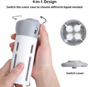 smart portable travel dispenser bottle No need to remove liquid bottles, just rotate the lid to switch between different dispensers.