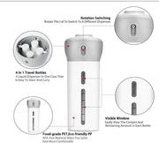 Rotating Dispenser System: The user-friendly rotating mechanism allows easy access to any of the four bottles without the hassle of unscrewing caps. This practical feature enhances convenience, making it effortless to switch between different toiletries during your journey.